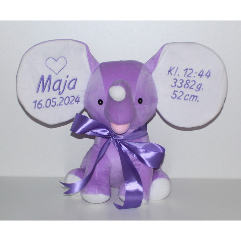 Den store lilla elefant med kæmpe ører, bliver hurtigt en god ven der både kan sidde til pynt og også egner sig til at sove med, eller komme med på tur. Den overholder alle EU-krav til plyslegetøj og kan bruges fra 0 år.