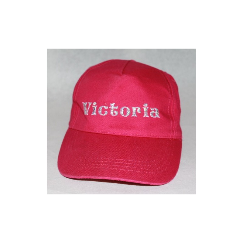 Pink børnekasket med navn broderet på. passer 2-10 år.